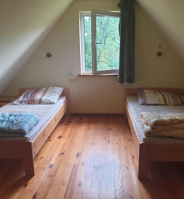 Domek z 2 sypialniami. The pool with a view and fireplace are the special features of this chalet. This chalet consists of 1 living room, 2 separate bedrooms and 1 bathroom with a shower. Guests will find a refrigerator and an electric kettle in the kitchenette. The chalet also offers a barbecue. Featuring a terrace with garden views, this chalet also provides a dining area and a flat-screen TV. The unit offers 8 beds. Domek - 6 osobowy. Powierzchnia pokoju ok.: 40 mkw.
