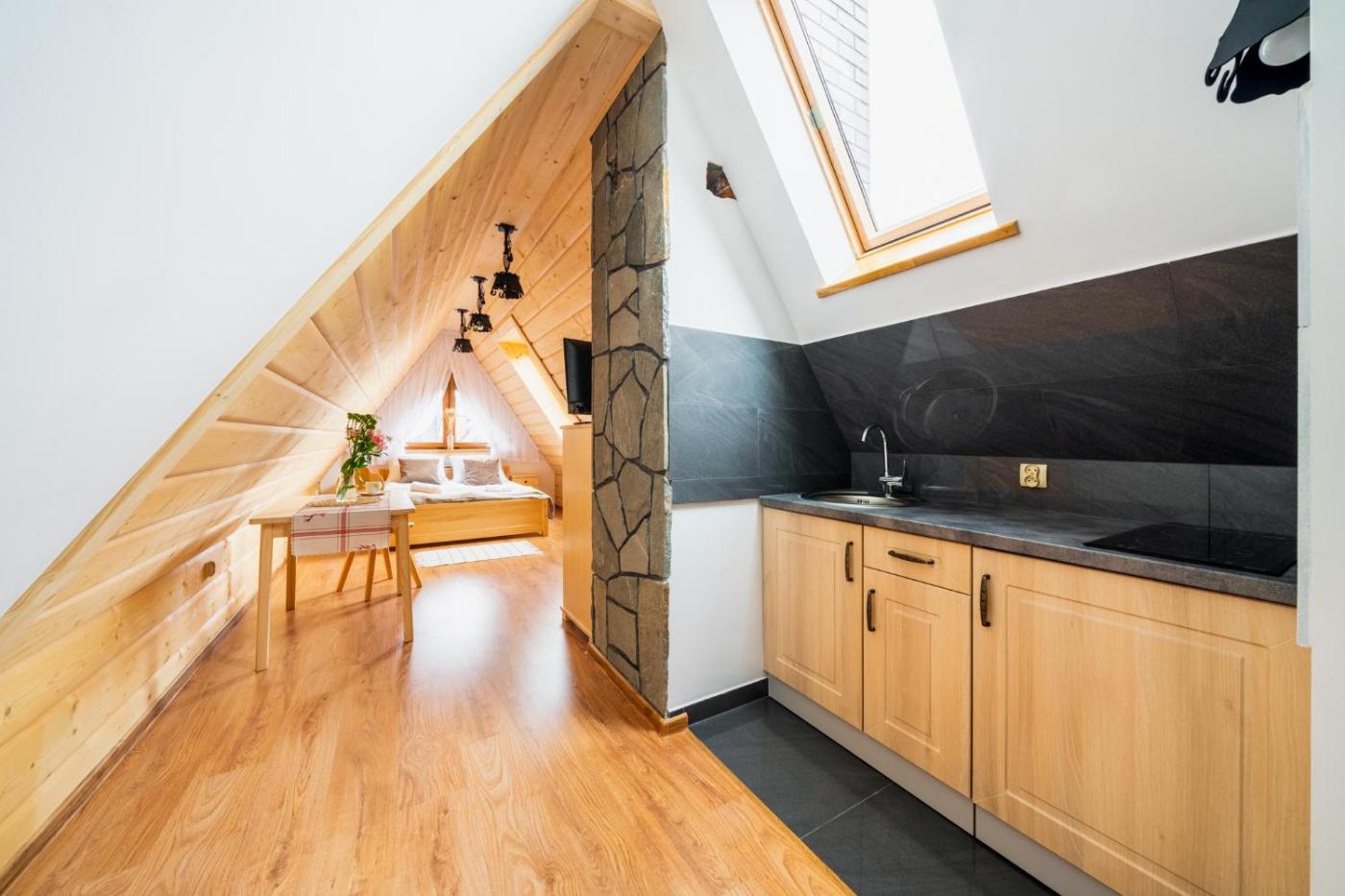 Apartament z 1 sypialnią. This apartment is comprised of 1 bedroom, a kitchenette and 1 bathroom with a shower. Guests will find a stovetop, a refrigerator and kitchenware in the kitchenette. The apartment also has a barbecue. The apartment offers a dining area, a wardrobe, an electric kettle, a flat-screen TV with cable channels, as well as mountain views. The unit offers 2 beds. Apartament - 4 osobowy. Powierzchnia pokoju ok.: 15 mkw. ;